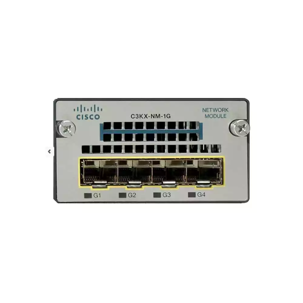 کارت ماژول سیسکو C3KX-NM-1G دارای چهار اسلات ماژول اس اف پی، 1 گیگابیتی است که ترکیبی از ماژول های SFP استاندارد را پشتیبانی می کند اما از ماژول های +SFP پشتیبانی نمی کند. اگر شما یک ماژول +SFP را در کارت ماژول شبکه 1 گیگابیت وارد کنید، ماژول +SFP کار نمی کند و سوئیچ یک پیام Error به شما نمایش می دهد.