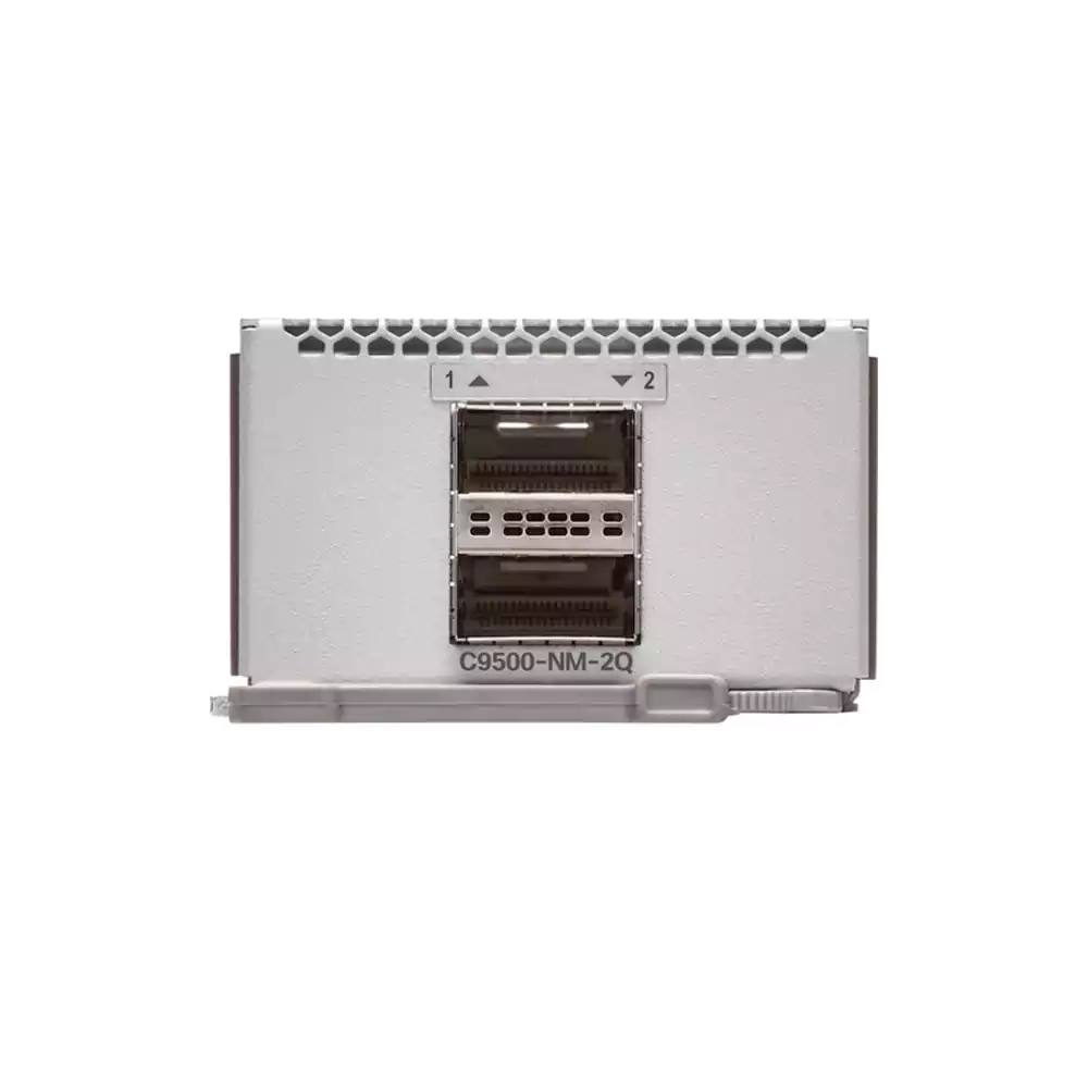 کارت ماژول سیسکو C9500-NM-2Q حرف اول نشان دهنده سازگاری این ماژول با سوئیچ های سری 9500 (Catalyst 9500) می باشد که این سری قدرت گسترش زیر ساخت های شبکه را فراهم آورده است و به راحتی امنیت و ویژگی ها کاربردی را فراهم آورده است و در قسمت دوم NM مخفف Network Module می باشد.